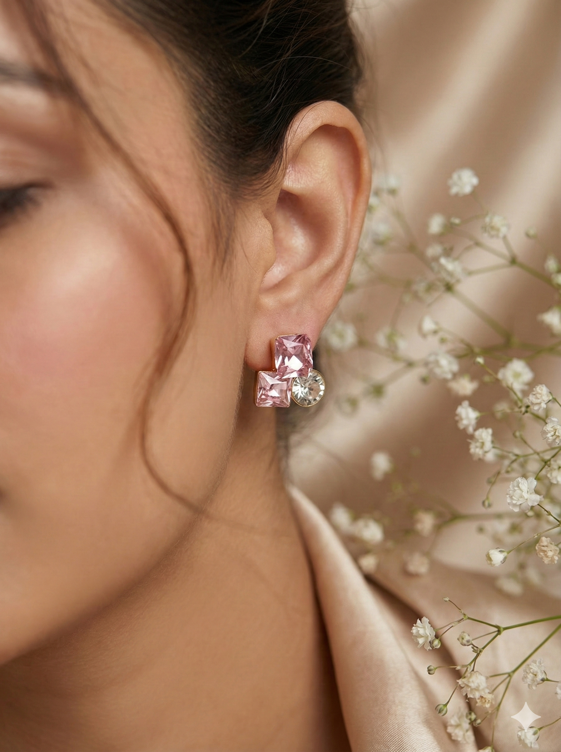 Elegant Pink & Crystal Stud Earrings – Dual Gemstone Design