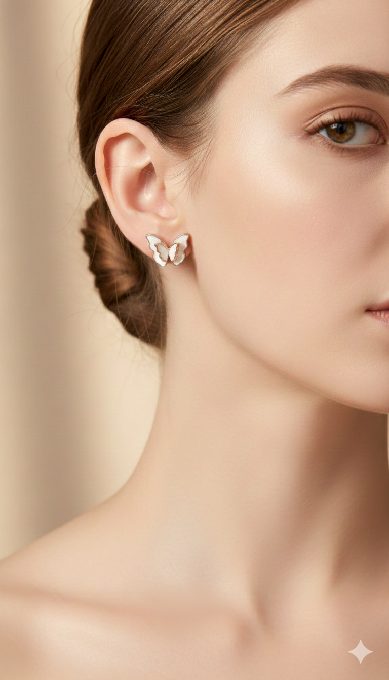 Add a touch of elegance and charm to your style with these delicate Rose Gold & White Butterfly Stud Earrings. Featuring a graceful butterfly design outlined in rose gold and filled with a glossy white enamel, these studs are perfect for everyday wear or special occasions. Lightweight, stylish, and beautifully crafted, they’re ideal for gifting or treating yourself to something sweet and feminine.