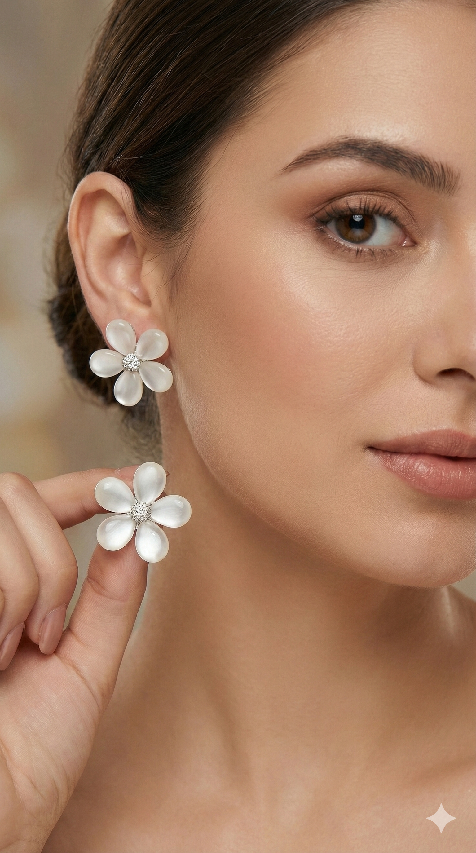 Delicate and dreamy, these white daisy flower stud earrings add a soft touch of nature-inspired charm to your accessory collection. Designed with smooth, petal-shaped acrylic and a textured silver-tone center, they offer a minimal yet eye-catching look that works perfectly for daytime outfits and romantic evenings alike.